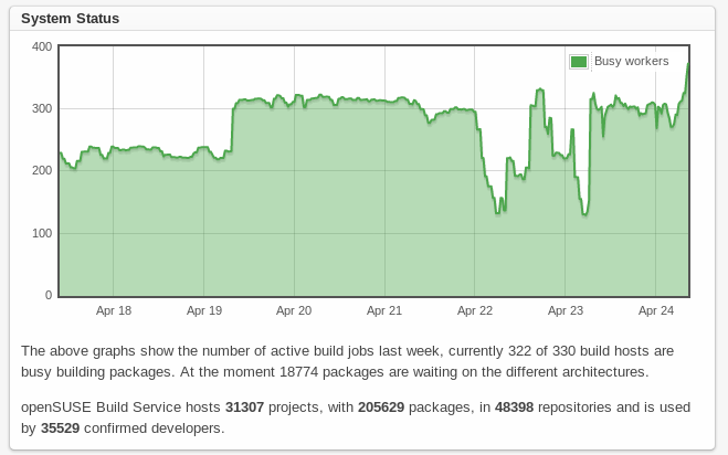 After one whole year of hard work, toil, tears and sweat from all our awesome contributors the latest release of the Open Build Service(OBS) is ready for you. Version 2.4 adds support for yet another package format, secure boot signing and appstream app stores. It also brings a constraint system to better match build hardware to build jobs and includes a lot of speed improvements. OBS 2.4 is the latest, greatest and rock solid release that is already used by our reference server since January. We strongly recommended to update to this version.