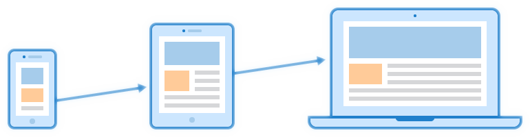 (start the design of the page on a small screen, which has more restrictions, then expand the page features to create a tablet or desktop version).