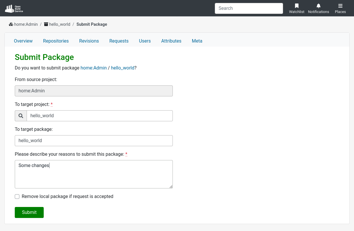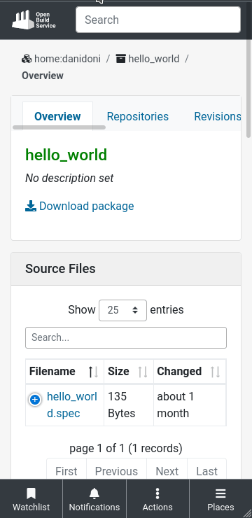 Another source of poor user experience was that actions you can do to projects and packages, like branching or editing, where scattered all over the page. To make this easier we grouped them all together in the Actions menu.