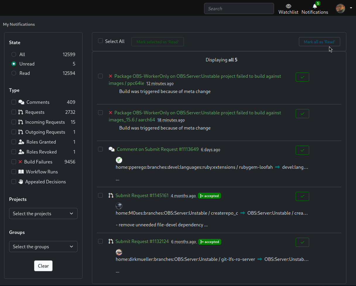 If you want to stay on top of your work in your OBS instance, you most likely deal with lots of notifications. We have made it easier for you to focus on what you need by enhancing the filtering of your notifications page. Basically, you can now: