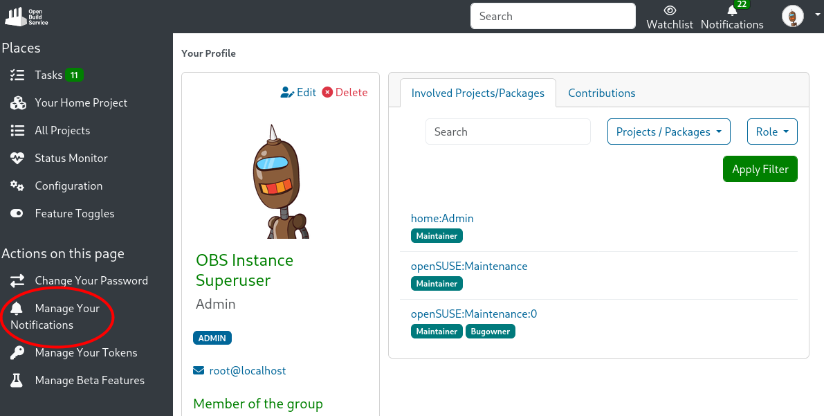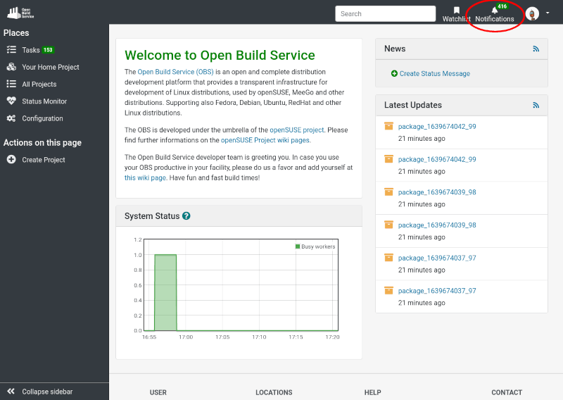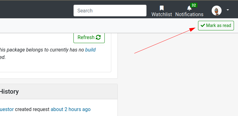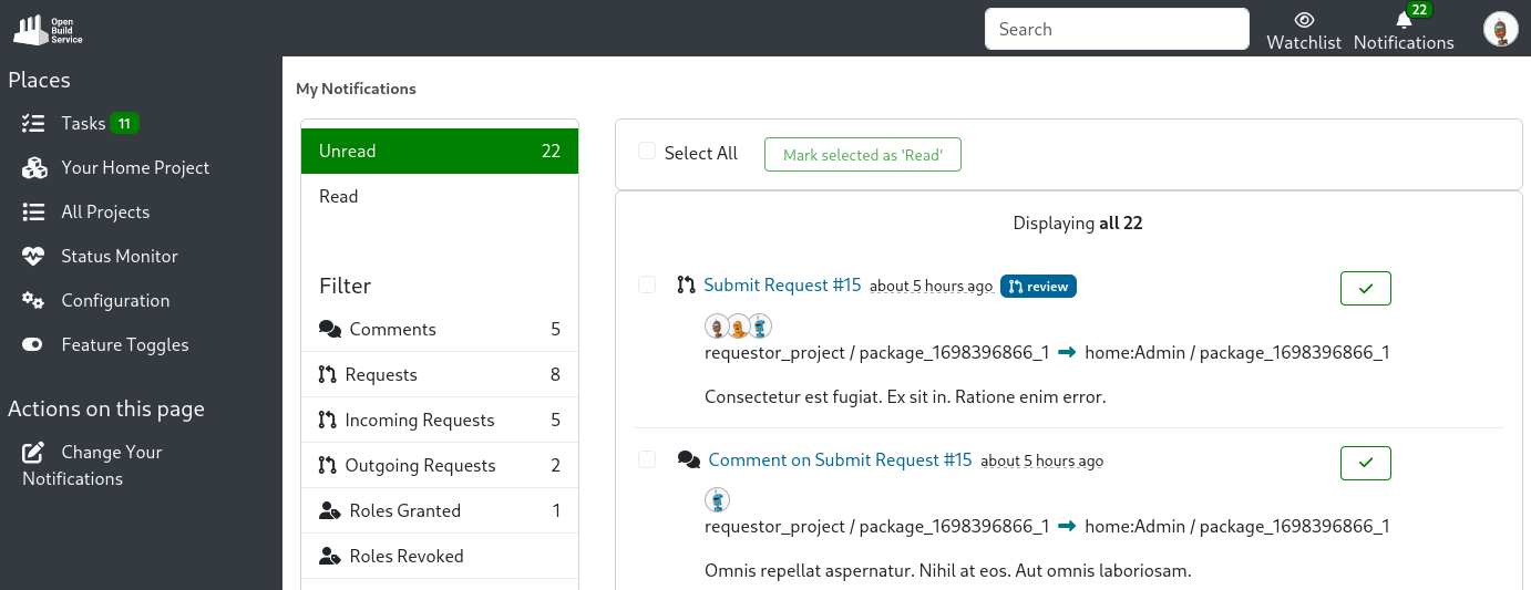 • Outgoing Requests: All unread notifications related to outgoing requests, so requests which you submitted to a project/package, will be displayed when selecting this filter.